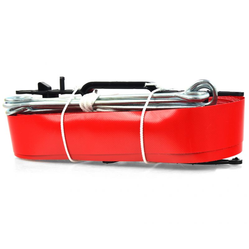 NETEX TA0003 RANNAVOLLEENI VÄLJAKU JOON NETEX rannavõrkpalliväljaku märgistuslint. Mõeldud täissuuruses 18 x 6 m väljaku märgistamiseks. Materjal: plastik. Komplektis 6 kinnitustihvti ja kate. Värvus: punane. Pikkus: 48 m.