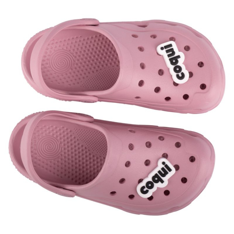 CoquiAir materjal (kõrgeima klassi EVA materjalid) Tugev kannapael Antibakteriaalsed omadused Pehmendus Libisemisvastane ja jälgi mittejättev tald Amuletzi nööpnõeltega isikupärastamise võimalus Komplekti kuulub vahetatav nööpnõel