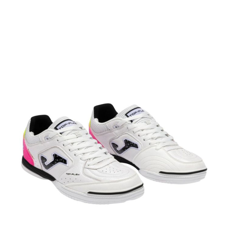 Joma Top Flex 2532 sisejalgpallisaapad valges ja mustas TOPW2532IN Need Joma meeste jalgpallisaapad on kindlasti hinnatud regulaarselt treenivate mängijate seas. Pealispind on valmistatud ehtsast nahast. Klassikaline paeltega kinnitus. Kaitsesüsteem tagab suurema kulumiskindluse. Vooder ja sisetald on valmistatud Phylon vahust. Vastupidav välistald. Tehnilised andmed: Vastupidavus - tagab vastupidavuse löögitsoonis. Jälgi mittejätvad - tald on valmistatud jälgi mittejätvatest materjalidest. Flexo - välistalla soonte süsteem tagab paindlikkuse ja suurendab loomulikku liikumisulatust. Rotation - tallaelement, mis toetab väledaid ja pöörlevaid liigutusi. VTS - ventilatsioonisüsteem, mis soodustab õhuringlust ja reguleerib jala temperatuuri. Kaitse - jalanõu ninaosa on tugevdatud, et suurendada jalanõu vastupidavust.