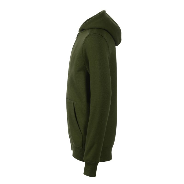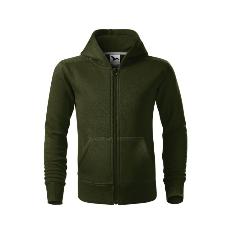 Frotee, harjatud seestpoolt 65% puuvill, 35% polüester, sirge lõige küljeõmblustega, täispikk pahkluu lukk, voodriga kapuuts ilma pingutusnöörita, kaelus ääris, tugevdatud kontrastse teibiga, kängurutaskud, 2:2 soonikkoes kootud alumine äär ja kätised 5% elastaaniga, harjatud seestpoolt