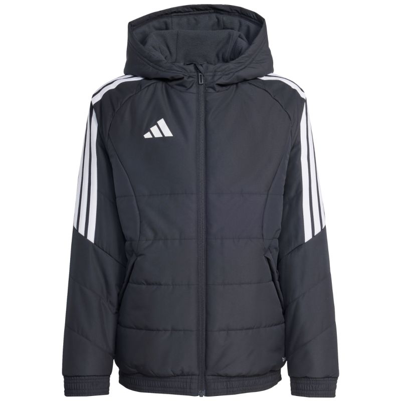 adidas Tiro 26 talvejope lastele, must KA5319 See adidas lastejope Tiro jalgpallisarjast sobib ideaalselt ka igapäevaseks kandmiseks. Sünteetiline täidis, mis on ühtlaselt jaotunud laiadesse horisontaalsetesse paneelidesse, aitab säilitada optimaalset kehatemperatuuri. Traditsiooniline lõige. Täispikk lukk. Lukkudega küljetaskud. Elastsed kätised ja alläär. Fikseeritud, mittereguleeritav kapuuts kõrgel püstkrael. Triibud varrukatel. Pehme logo ees. Climawarm-tehnoloogia. Väliskihi vetthülgavad omadused. Tuulekindel kangas. Välismaterjal: 100% taaskasutatud polüester. Täidis: 100% taaskasutatud polüester.