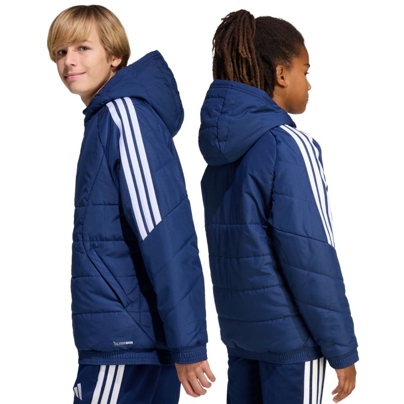 adidas Tiro 26 talvejope lastele, tumesinine KA8026 See adidas lastejope Tiro jalgpallisarjast sobib ideaalselt ka igapäevaseks kandmiseks. Sünteetiline täidis, mis on ühtlaselt jaotunud laiadesse horisontaalsetesse paneelidesse, aitab säilitada optimaalset kehatemperatuuri. Traditsiooniline lõige. Täispikk lukk. Lukkudega küljetaskud. Elastsed kätised ja alläär. Fikseeritud, mittereguleeritav kapuuts kõrgel püstkrael. Triibud varrukatel. Pehme logo ees. Climawarm-tehnoloogia. Väliskihi vetthülgavad omadused. Tuulekindel kangas. Välismaterjal: 100% taaskasutatud polüester. Täidis: 100% taaskasutatud polüester.