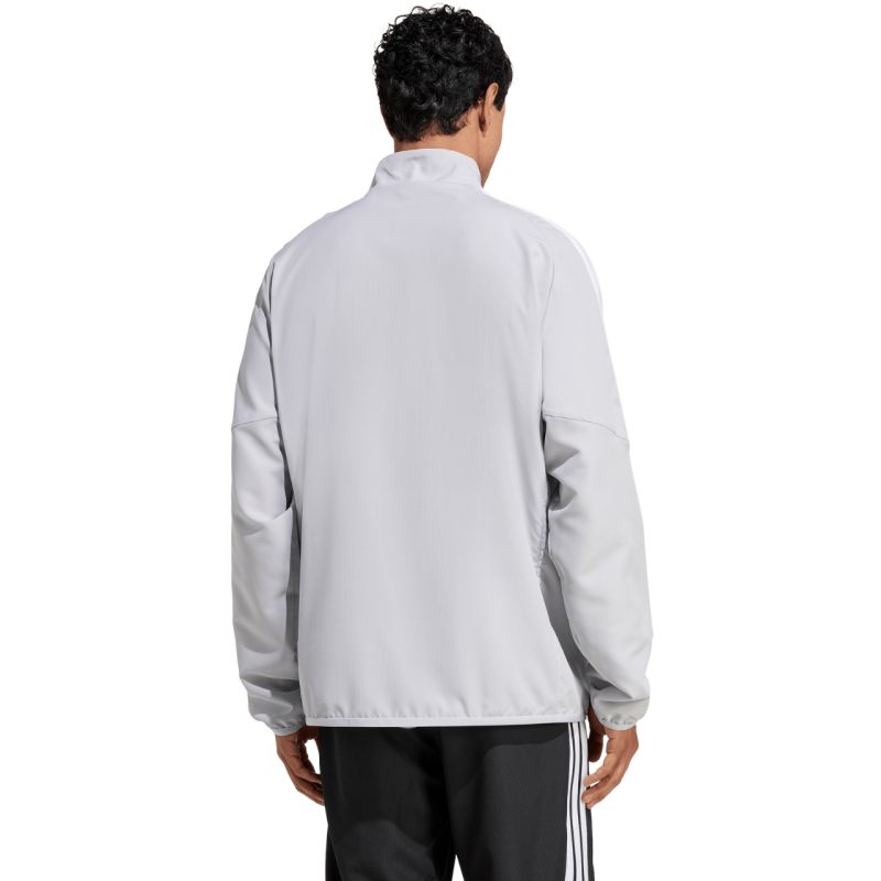 adidas Tiro 26 League Presentation helehall meeste dressipluus JZ9050. See adidas meeste dressipluus sobib ideaalselt väljakult lahkumiseks. Tiro sarja kuuluval dressipluusil on tikitud logo ja kolm triipu. See on valmistatud kergest kootud kangast. Polüesterkiud on taaskasutatud. Sellel on tavaline lõige. Pluusil on täispikk tõmblukk. Küljetaskud ja elastsed kätised. Materjal: 100% taaskasutatud polüester.