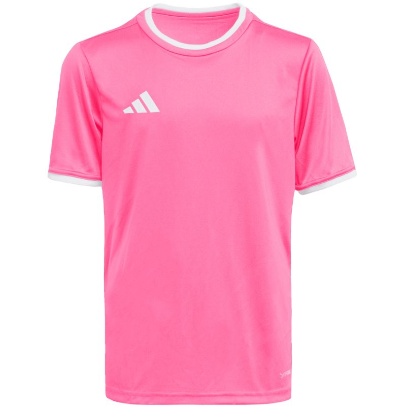 adidas Entrada 26 laste särk, roosa KE9846. See adidas laste särk peaks olema iga noore jalgpalluri sportliku garderoobi põhiosa, kes soovib keskenduda oma oskuste täiustamisele. Kerget polüesterkonstruktsiooni täiustab Climacool-tehnoloogia, mis aitab higi nahalt eemale juhtida, hoides sind värske, kuiva ja jahedana. Klassikaline lõige võimaldab piiramatut liikumist. Esteetiliselt meeldivate viimistluste hulka kuuluvad ümar kaelus ja tikitud logo. Materjal: 100% taaskasutatud polüester.