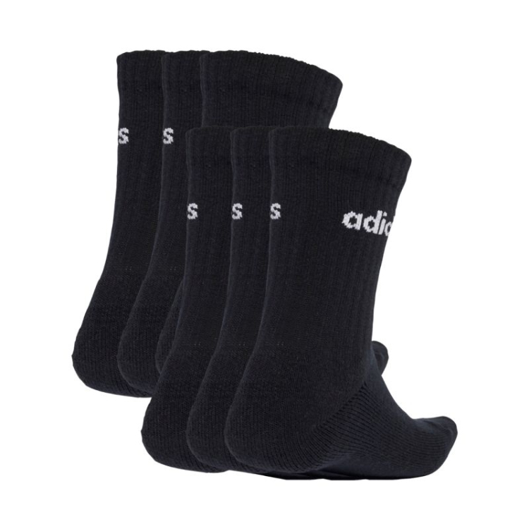 Adidas Linear Crew pehmendusega sokid, 6 paari, mustad JL6094. Need adidas spordisokid on pehmest kootud kangast ja liibuva sääreosaga. Elastne ja kõrge randmeosa tagab mugava istuvuse ja aitab sokke paigal hoida. Nendel Adidas sokkidel on peen brändilogo. Igas komplektis on 6 paari sokke. Materjal: 100% nailon.