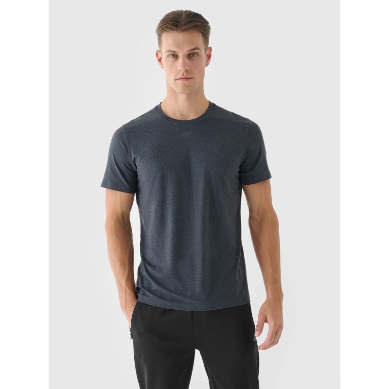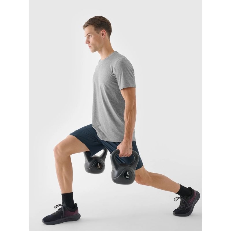 See meeste kiiresti kuivav jõusaali T-särk on loodud intensiivseteks treeninguteks ja igapäevaseks füüsiliseks tegevuseks. Valmistatud vastupidavast sünteetilisest materjalist , seda on lihtne hooldada ja see säilitab oma kuju ka sagedase kandmise korral. 10% elastaani lisand muudab T-särgi venivaks ja istub mugavalt keha ümber, piiramata liikumist. Mõlemalt poolt sileda struktuuriga põimitud kookangas on pehme, kuid vastupidav. 4FDry tehnoloogiaga Quick kuivavad kiud imavad niiskuse tõhusalt kehalt eemale, aidates teil püsida kuivana ja mugavalt isegi nõudlike treeningute ajal. Tavaline lõige ja klassikaline ümar kaelus annavad T-särgile mitmekülgse iseloomu, mistõttu sobib see nii jõusaali kui ka igapäevaseks sportlikuks riietuseks.