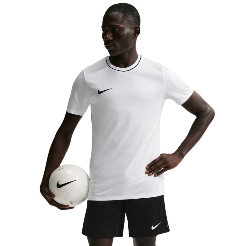 Nike Dri-Fit Park 26 SS meeste topp valge HM7127 100 Ära lase millelgi end võitmast takistada, hoolitse mugava treeningu eest ja vali see Nike meeste T-särk. Kerge kangas Dri-FIT tehnoloogiaga juhib tõhusalt niiskust eemale, jättes sulle treeningu ajal mugavuse ja värske tunde. Seljaosa on valmistatud perforeeritud kangast. Kitsa lõikega lühikeste varrukate ja ümara kaelusega. Tikitud brändilogo rinnal. Valides Nike taaskasutatud polüestrist T-särgi, aitad kaitsta loodusvarasid. Materjal: 100% taaskasutatud polüester
