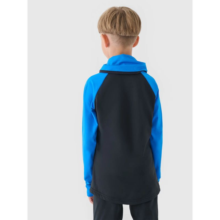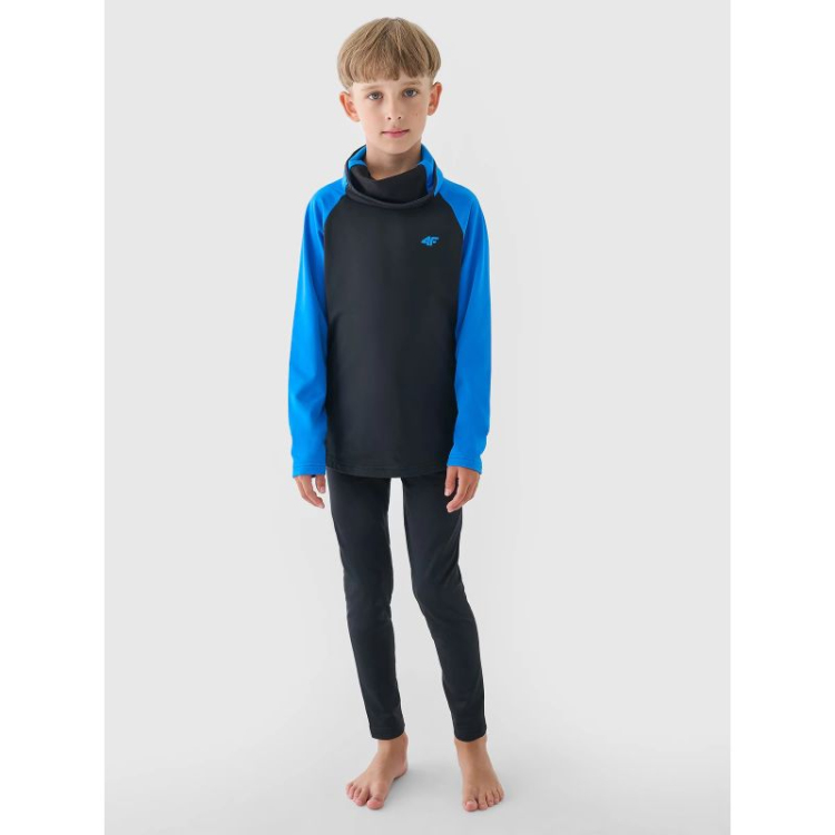 See soe termopesu on valmistatud sünteetilisest materjalist, mis tagab vastupidavuse ja lihtsa hoolduse. Tänu 10% elastaani lisandile on materjal veniv ja istub mugavalt. See laste termosärk 4FWarm tehnoloogiaga tagab termilise mugavuse ja aitab hoida ühtlast kehatemperatuuri. Kõrge kaelusega kaelus kaitseb tõhusalt külma eest, samas kui perforeeritud kangast sisetükk hõlbustab hingamist, kui krae näole tõmmata. Raglaanvarrukad võimaldavad piiramatut liikumist.